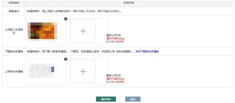 3、考生需按要求上傳轉(zhuǎn)入地準(zhǔn)考證,下載填寫(xiě)并上傳轉(zhuǎn)出申請(qǐng)表,提交審核即可完成轉(zhuǎn)考申請(qǐng),后續(xù)關(guān)注進(jìn)度即可。