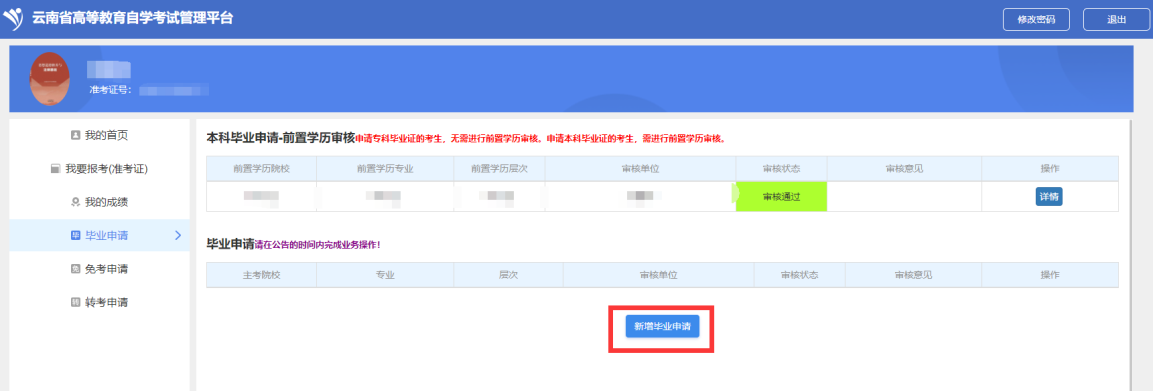 2024年云南省高等教育自學考試管理平臺畢業申請操作流程