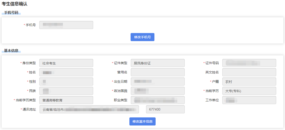 第一步:信息確認(手機號碼、基本信息、確認點、專業、畢業照片的信息確認):