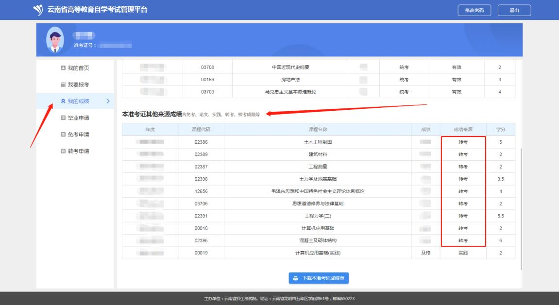 第三步:等待云南省接收,轉入成功的成績在公告時間后,考生可登錄系統,在“我的成績”查詢對應轉考成績信息。