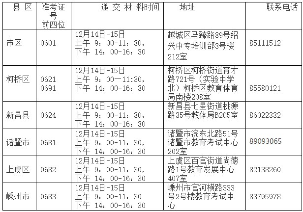 紹興市各區、縣(市)教育考試機構受理時間、地址及聯系電話
