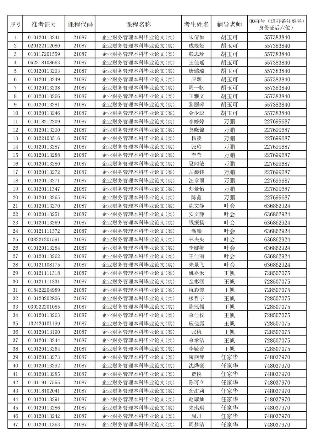 浙江工商大學2022年(下)自考畢業論文指導教師安排(企業財務管理)