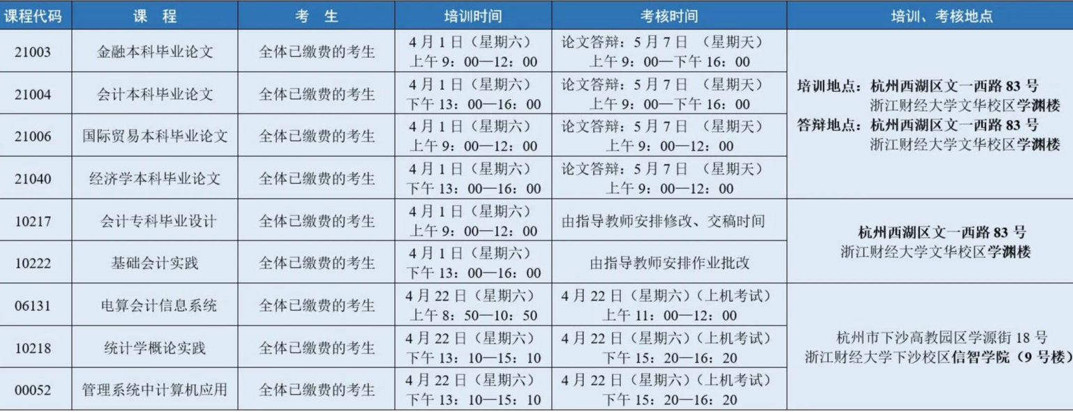 浙江財經大學2023年(上)高教自考實踐性環節培訓、考核安排